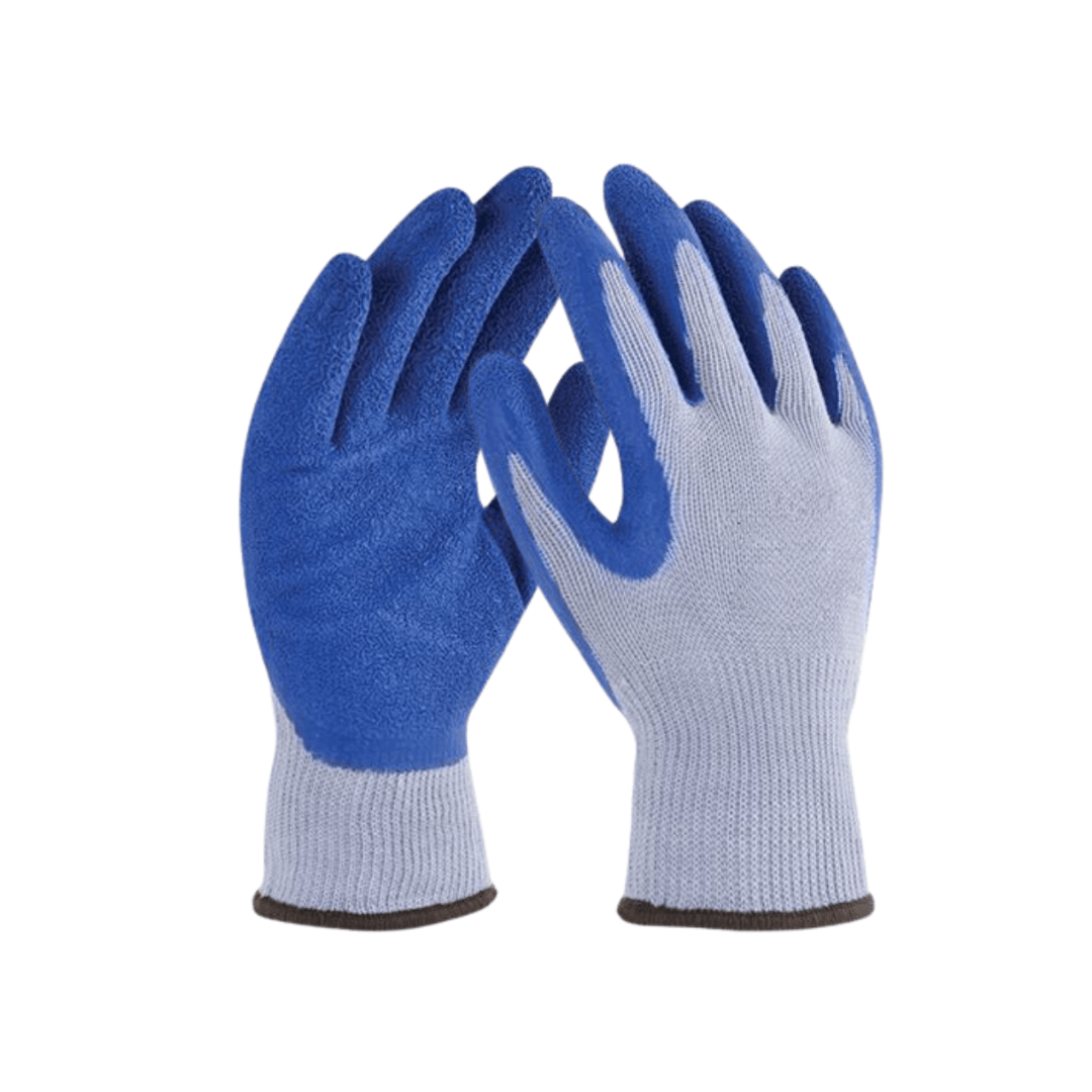 Fabricado de poliéster con algodón, con revestimiento de látex azul en palma, puño tejido de punto ribeteado. La ausencia de costuras logra que ese modelo sea muy confortable y fresco, garantizando un agarre muy firme en superficies secas o húmedas. Empaque: 12 pares por bolsa, 10 bolsas por caja – Caja con 120 pares / Mínimo de Venta: 1 caja.