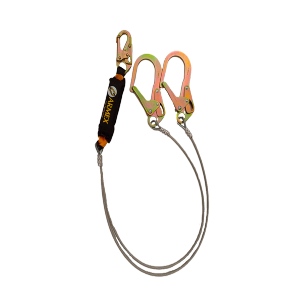 LÍNEA DE VIDA DE ACERO, DOBLE BRAZO CON AMORTIGUADOR DE IMPACTO GANCHOS GRANDES